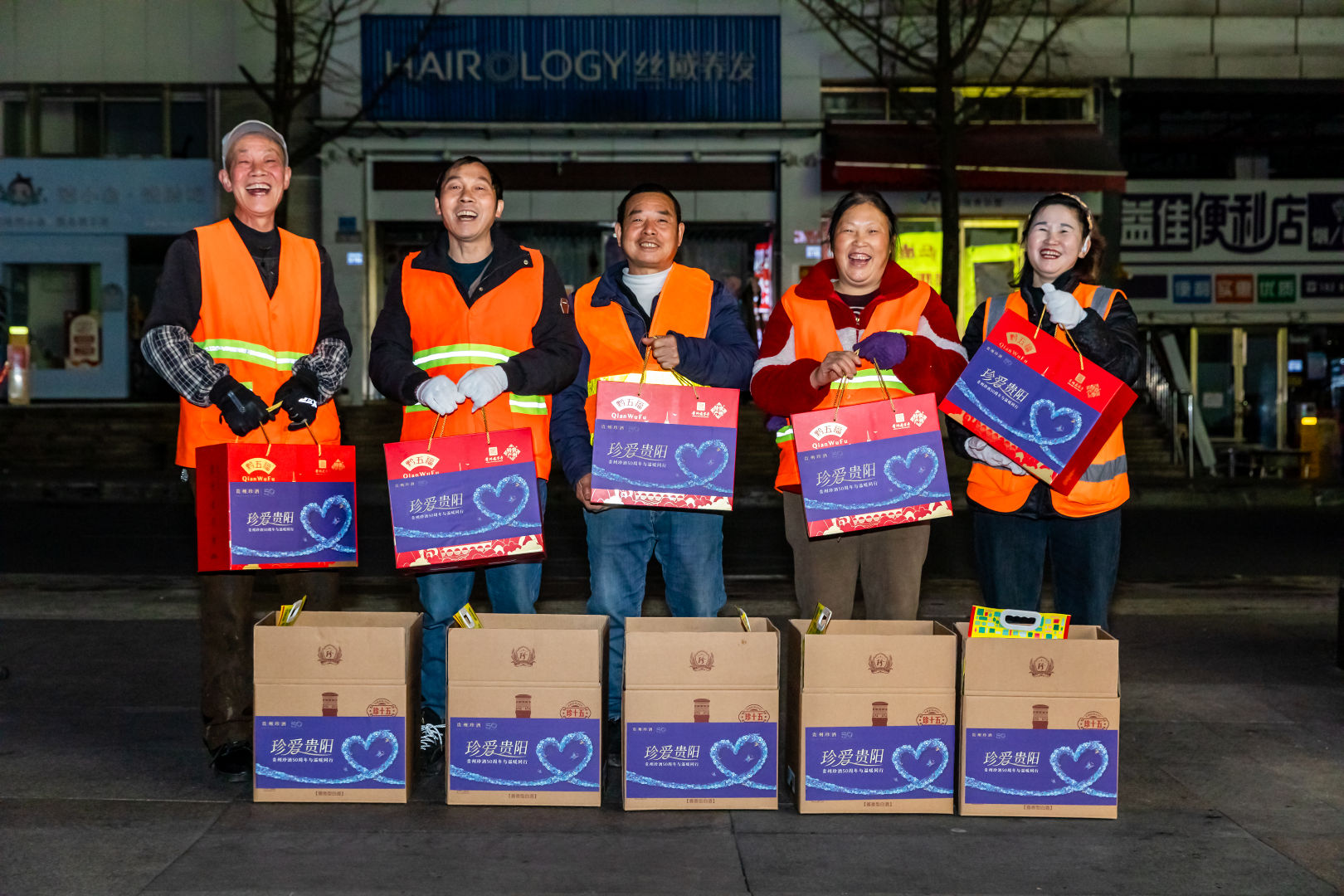 1月23日,正值南方小年,在貴陽市相關(guān)部門支持下,貴州珍酒攜手經(jīng)銷商、核心網(wǎng)點,舉辦“珍愛貴陽·貴州珍酒50周年與溫暖同行”公益活動,向堅守崗位的環(huán)衛(wèi)工人致敬,并送上新春慰問。